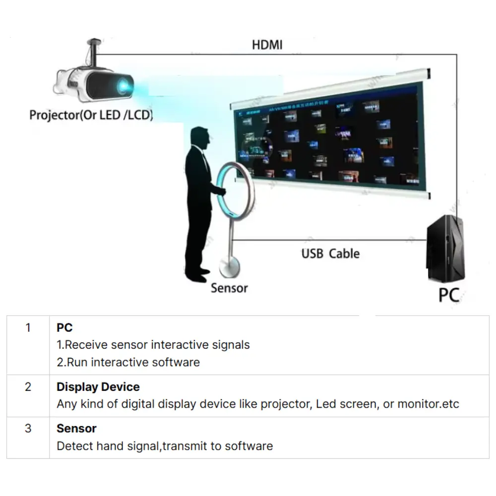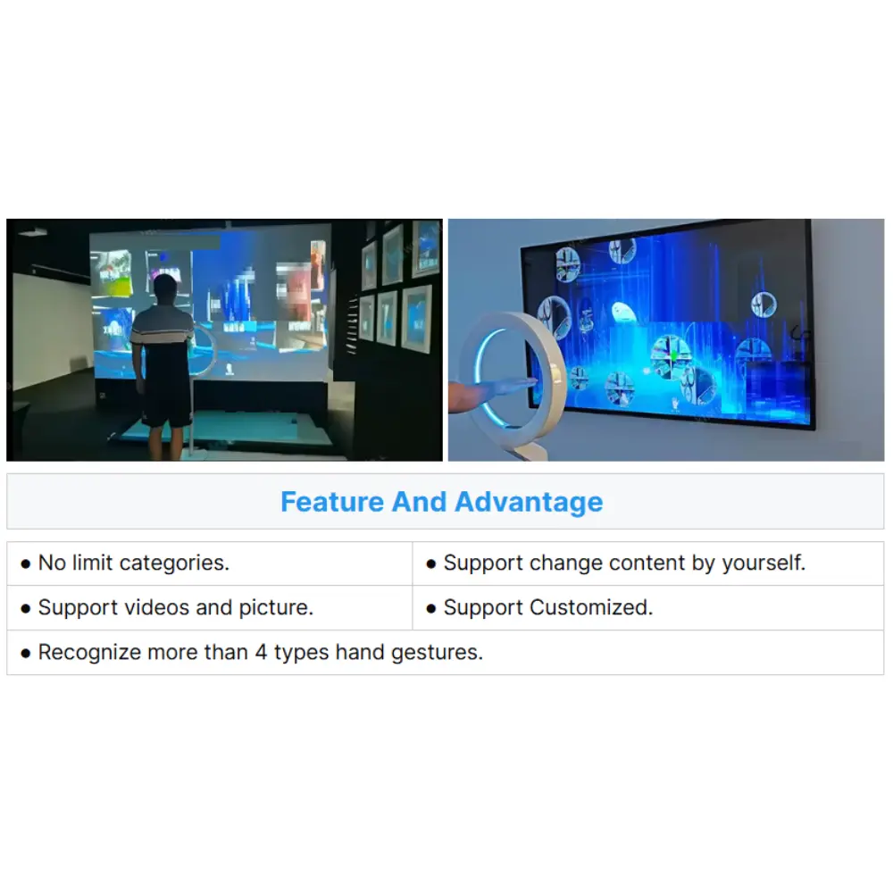 Το Σύστημα Τρισδιάστατης Διαδραστικής Αναγνώρισης Χειρονομιών για Εκθέσεις και Μουσεία είναι μια προηγμένη διαδραστική συσκευή σχεδιασμένη για καθηλωτικές εμπειρίες χρήστη σε μουσεία, εκθέσεις και εμπορικούς χώρους. Αυτό το σύστημα χρησιμοποιεί τεχνολογία αιχμής που βασίζεται σε τεχνολογία κάμερας Leap Motion για την ακριβή αναγνώριση χειρονομιών και κινήσεων, επιτρέποντας στους χρήστες να χειρίζονται ψηφιακό υλικό χωρίς να χρησιμοποιούν τα χέρια τους. Αυτή η καινοτόμος λύση ενισχύει τη διαδραστικότητα, καθιστώντας τις εκπαιδευτικές και προωθητικές εμπειρίες πιο ελκυστικές. Το σύστημα υποστηρίζει οθόνες υψηλής ανάλυσης όπως οθόνες LED, προβολείς και πάνελ LCD, εξασφαλίζοντας ομαλή και καθαρή οπτική απόδοση έως 1920×1080 (HD). Κατασκευασμένο από ανοξείδωτο ατσάλι, είναι ανθεκτικό και σχεδιασμένο να αντέχει σε εκτεταμένη δημόσια χρήση. Επιπλέον, λειτουργεί σε ένα ευρύ φάσμα θερμοκρασιών (-20°C έως 50°C), καθιστώντας το προσαρμόσιμο σε διάφορα περιβάλλοντα. Χρησιμοποιούμενο σε επιχειρηματικά περιβάλλοντα, εκπαιδευτικά ιδρύματα, χώρους ψυχαγωγίας και χώρους λιανικής πώλησης, αυτό το σύστημα με τεχνητή νοημοσύνη φέρνει επανάσταση στην διαδραστική αφήγηση ιστοριών, τις παρουσιάσεις και την εμπλοκή των πελατών.