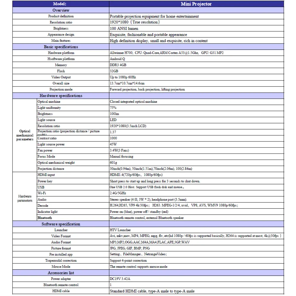 Φορητός Διαδραστικός Προβολέας Android με Υψηλή Ανάλυση – Προδιαγραφές