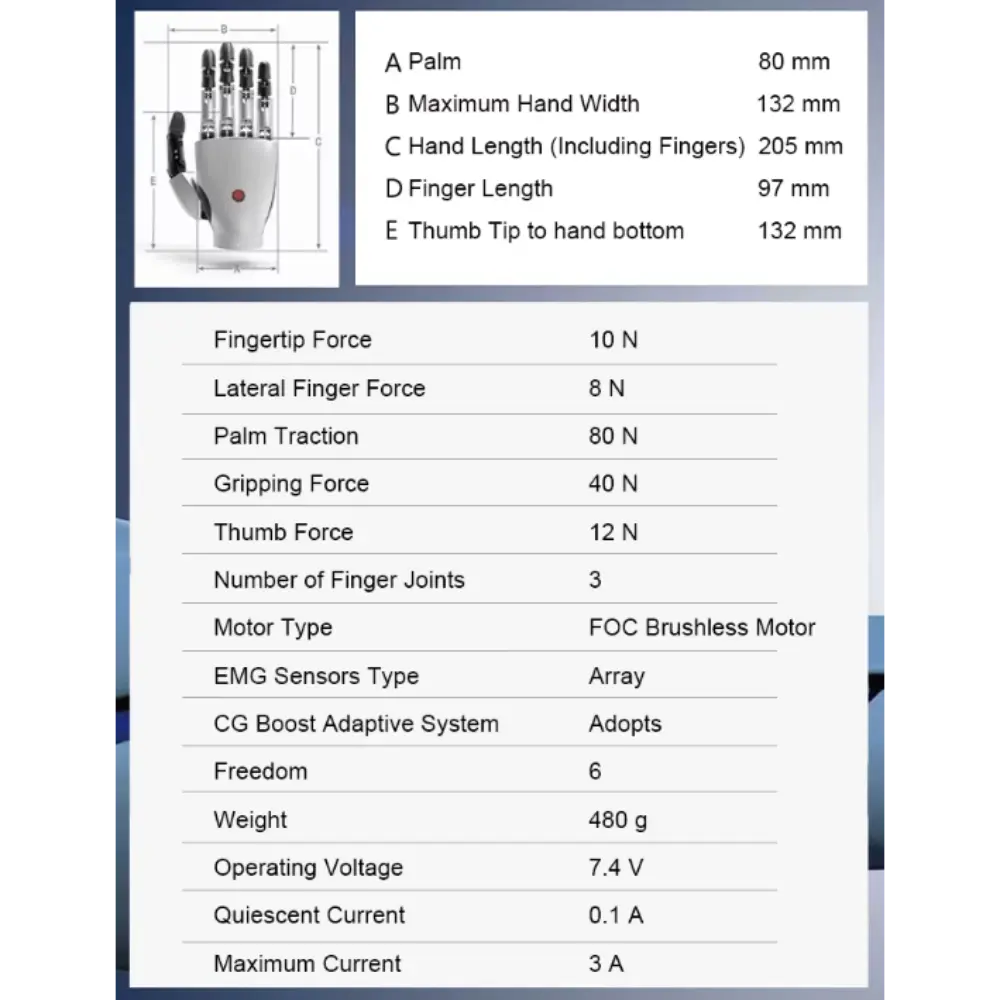 Biohand – Έξυπνο Προσθετικό Ρομποτικό Χέρι – Προδιαγραφές: