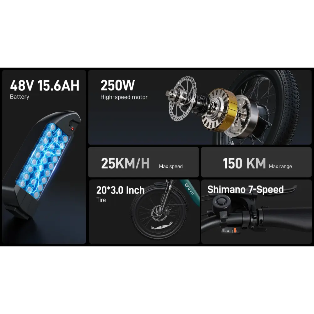 DYU C9 Ηλεκτρικό Ποδήλατο Μεγάλης Αυτονομίας – Προδιαγραφές: