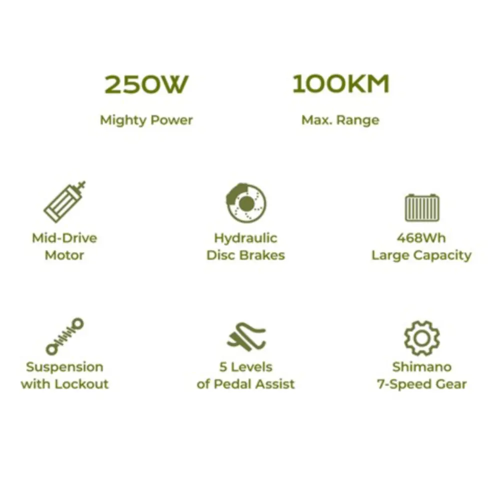 - Τύπος κινητήρα: Κινητήρας μεσαίας κίνησης 250W