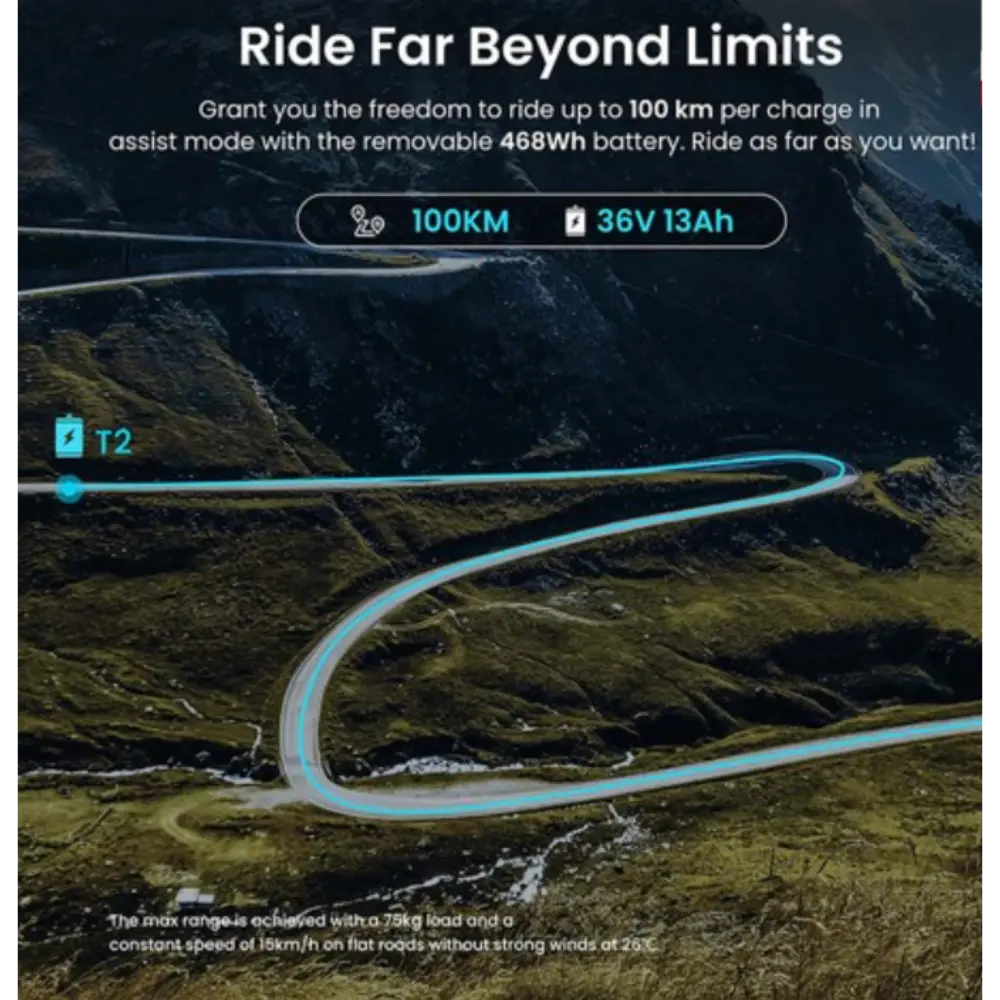 • Μπαταρία: 36V 13Ah (468Wh), αφαιρούμενη ιόντων λιθίου με σύστημα προστασίας