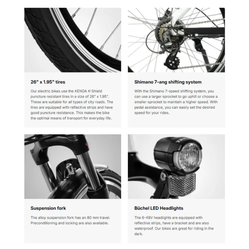 Το Himiway City Pedelec Ηλεκτρικό Ποδήλατο είναι ένα προσεκτικά σχεδιασμένο ηλεκτρικό ποδήλατο για αστικές μετακινήσεις που συνδυάζει άνεση, απόδοση και πρακτικότητα. Κατασκευασμένο με ελαφρύ πλαίσιο αλουμινίου 6061 και σχεδιασμό χαμηλού πλαισίου, είναι εύκολο στην τοποθέτηση και την αποσυναρμολόγηση – ιδανικό για αναβάτες όλων των ηλικιών και επιπέδων κινητικότητας. Στον πυρήνα του βρίσκεται ένας ισχυρός κινητήρας πλήμνης χωρίς ψήκτρες 250W σε συνδυασμό με μια μπαταρία ιόντων λιθίου 36V 18,2Ah Samsung/LG, που προσφέρει ταχύτητες υποβοήθησης πεταλιού έως και 25 χλμ./ω και αυτονομία άνω των 120 χλμ. ανά φόρτιση. Η μπροστινή ανάρτηση του και τα ελαστικά 27,5″ ανθεκτικά στα τρυπήματα προσφέρουν ομαλή οδήγηση σε ανώμαλο έδαφος και σε αστικούς δρόμους. Οι εργονομικές λαβές, η μαλακή σέλα και το τιμόνι με κλίση προς τα πίσω βελτιώνουν την άνεση του αναβάτη, ενώ τα ενσωματωμένα φώτα LED και η πίσω σχάρα προσθέτουν ασφάλεια και χρηστικότητα. Τα 7τάχυτα γρανάζια Shimano και τα υδραυλικά φρένα παρέχουν αξιόπιστο έλεγχο και προσαρμοστικότητα. Είναι μια έξυπνη, οικολογική επιλογή για καθημερινές μετακινήσεις ή χαλαρή αστική εξερεύνηση.