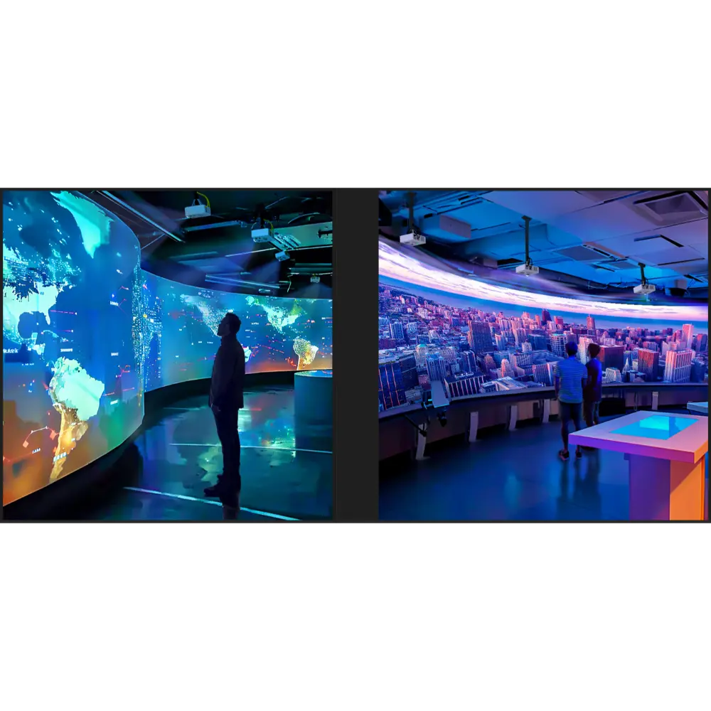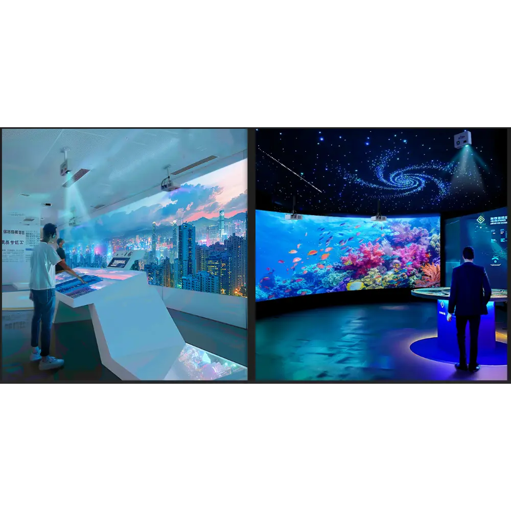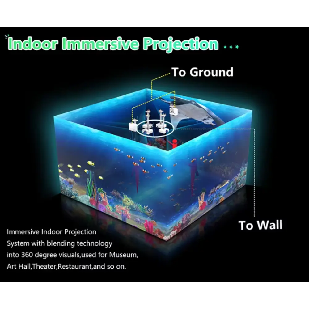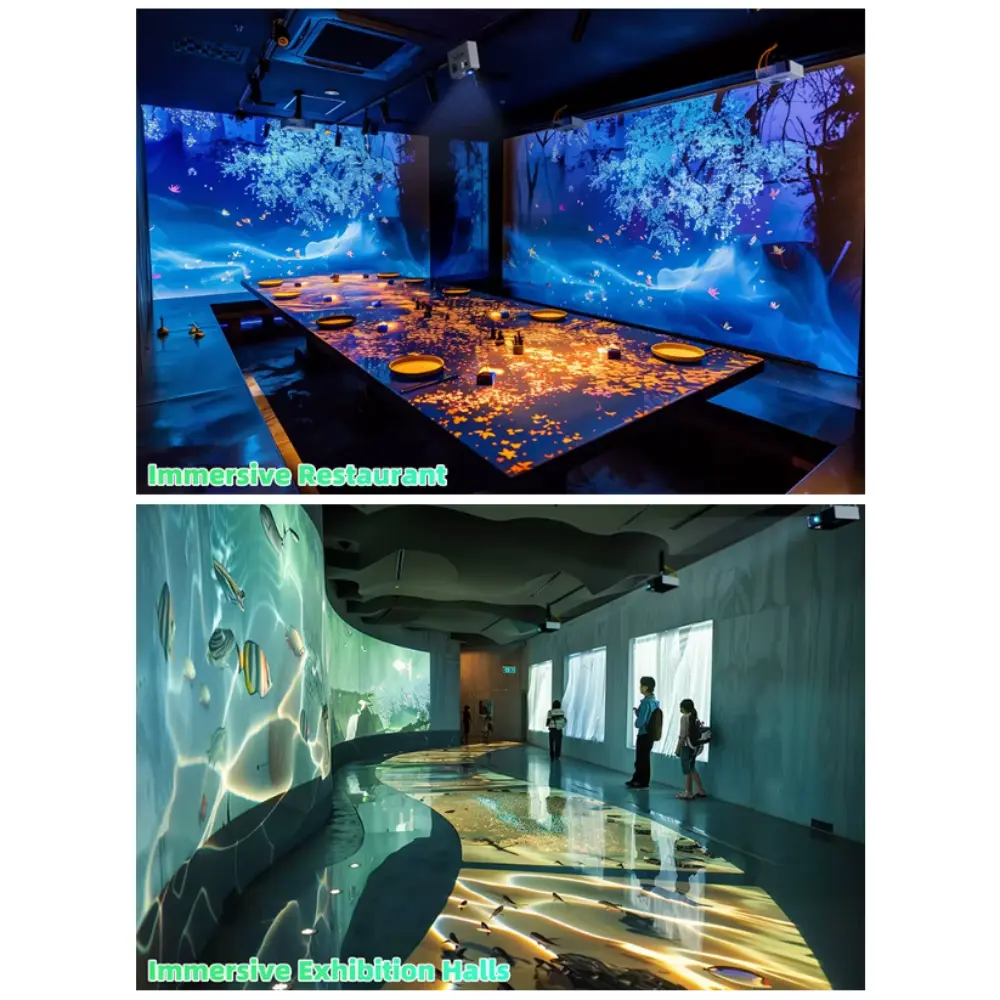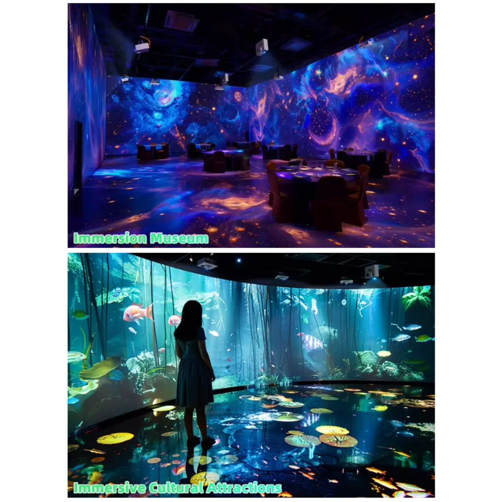 Το Σύστημα Προβολής Δωματίου Εμβυθιστικής Εμπειρίας με Υψηλής Ευκρίνειας Οπτικά είναι μια πρωτοποριακή λύση που μετατρέπει τους κλειστούς χώρους σε δυναμικά, διαδραστικά περιβάλλοντα. Ιδανικό για μουσεία, εκπαιδευτικά κέντρα, χώρους ψυχαγωγίας και επώνυμες εμπειρίες, αυτό το σύστημα χρησιμοποιεί προβολείς υψηλής ανάλυσης και συγχρονισμένη αναπαραγωγή πολυμέσων για να περιβάλλει τοίχους, δάπεδα και οροφές με οπτικά 360°. Υποστηρίζει πλατφόρμες Android και Windows, προσφέροντας ευέλικτη ενσωμάτωση περιεχομένου και δυνατότητες τηλεχειρισμού. Η ρύθμιση προβολής μπορεί να περιλαμβάνει πολλαπλά θέματα – όπως υποβρύχιες σκηνές, καλλιτεχνικά εφέ σωματιδίων ή διαδραστικές προσομοιώσεις φύσης – επιτρέποντας στους χρήστες να αλληλεπιδρούν με το περιβάλλον μέσω κίνησης ή αφής. Το σύστημα περιλαμβάνει έναν προβολέα υψηλής φωτεινότητας, διακομιστή πολυμέσων και υλικό τοποθέτησης, με επιλογές για εγκατάσταση σε τοίχο, οροφή ή ανάρτηση. Με μέγιστη ανάλυση έως 3840×2160 και υποστήριξη για αλληλεπίδραση με χειρονομίες, προσφέρει μια βαθιά καθηλωτική εμπειρία. Αυτή η τεχνολογία είναι ιδιαίτερα δημοφιλής για αίθουσες διαλογισμού, αίθουσες διδασκαλίας και προωθητικές ενεργοποιήσεις, όπου η οπτική επίδραση και η συναισθηματική εμπλοκή είναι το κλειδί.