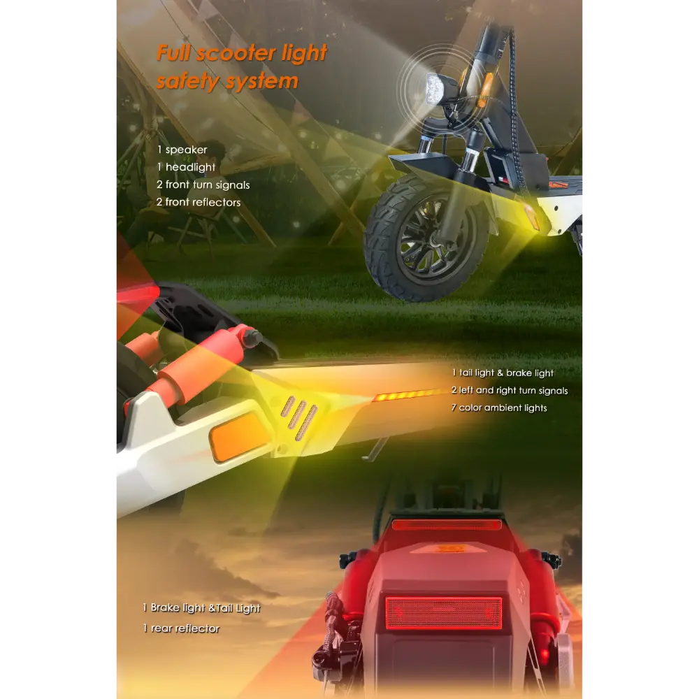 - Σύστημα φωτισμού: Φανός ευρείας δέσμης προβολέων, φως φρένων, φλας και ατμοσφαιρικός φωτισμός 7 χρωμάτων