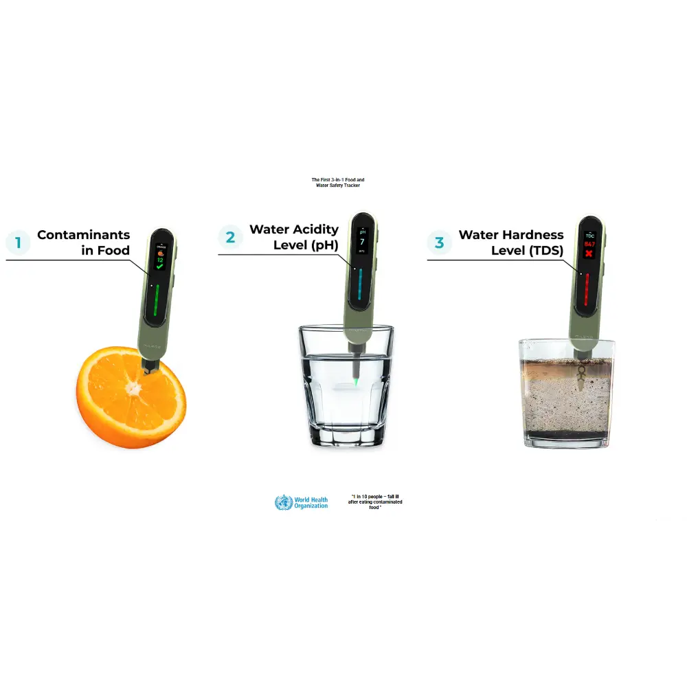Το Milerd EcoTracker είναι μια συμπαγής συσκευή τσέπης,σχεδιασμένη για να σας βοηθά να αξιολογείτε άμεσα την ασφάλεια τόσο των τροφίμων όσο και του νερού. Αυτή η έξυπνη, εξαιρετικά φορητή συσκευή παρέχει πληροφορίες εργαστηριακούεπιπέδου σε μόλις τρία δευτερόλεπτα, σαρώνοντας φρούτα, λαχανικά, κρέας, ψάρι, ακόμη και την ποιότητα του νερού με εντυπωσιακή ακρίβεια. Βαθμονομημένη για περισσότερα από 60 είδη φρούτων, λαχανικών, ψαριών και κρέατος, ανιχνεύει αυξημένα επίπεδα νιτρικών και κοινούς χημικούς ρύπους σε μόλις τρία δευτερόλεπτα. Ο επιχρυσωμένος ‑αισθητήρας της εξασφαλίζει ακριβείς μετρήσεις χωρίς να απαιτούνται ταινίες μέτρησης ή εργαστηριακή ανάλυση. Το EcoTracker μπορεί επίσης να μετρήσει το pH του νερού και το TDS (Συνολικά Διαλυμένα Στερεά), δίνοντάς σας μια ευρύτερη εικόνα της ποιότητας του νερού. Η συσκευή διαθέτει έγχρωμη οθόνη LCD, χειριστήρια αφής και ελαφρύ σχεδιασμό που τη καθιστά εύκολη στη μεταφορά οπουδήποτε – από οικιακές κουζίνες μέχρι λαϊκές αγορές. Η μπαταρία μακράς διαρκείας και η ανθεκτική βαθμολογία προστασίας IP65 την καθιστούν αξιόπιστη για καθημερινή χρήση. Με επιστημονικά βαθμονομημένες ρυθμίσεις, επιλογές χειροκίνητης ρύθμισης και τη δυνατότητα καταγραφής στατιστικών, το EcoTracker προσφέρει έναν πρακτικό τρόπο παρακολούθησης του τι καταναλώνετε.