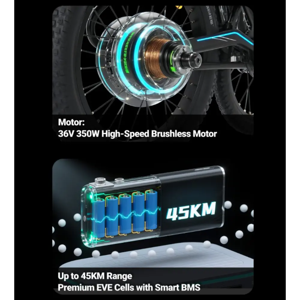 - Κινητήρας: Κινητήρας πίσω πλήμνης υψηλής ταχύτητας 36V 350W