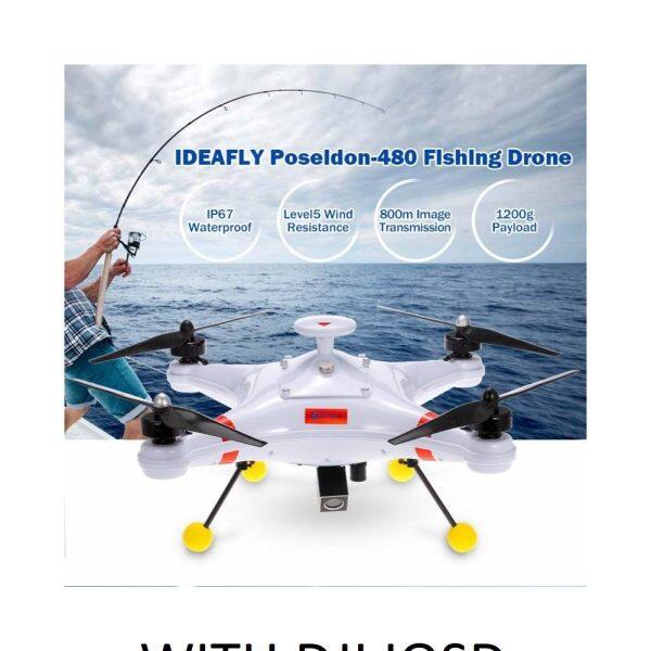 Το POSEIDON – 480 είναι ένα καταπληκτικό drone ψαρέματος που μπορεί να κάνει ακόμα πιο ενδιαφέρον το ψάρεμα. Το drone υψηλής απόδοσης μπορεί να χειριστεί χωρίς καμιά δυσκολία την καταιγίδα και τον άνεμο επιπέδου 5. Χρησιμοποιεί τον ελεγκτή πτήσης DJI NAZE, το Bluetooth Datalink LK24-BT 2.4GHz, το πομπό FLYSKY i6S και έτσι μπορείτε να σχεδιάσετε τις διαδρομές πτήσης και να ρίξετε τα δολώματα με υψηλή ροπή σε απόσταση περίπου 1,5 χιλιομέτρων. Έχει μοναδική βαθμολογία αδιαβροχοποίησης IP67και 1.200g μεγάλο ωφέλιμο φορτίο. Ο ελεγκτής πτήσης είναι εξοπλισμένος με σύστημα GPS το οποίο διαθέτει μεγάλη αξιοπιστία και λειτουργία επιστροφής με ένα κουμπί και η μετάδοση εικόνας 5.8G 600mW σε μεγάλη απόσταση παρέχει ασφαλέστερη πτήση.