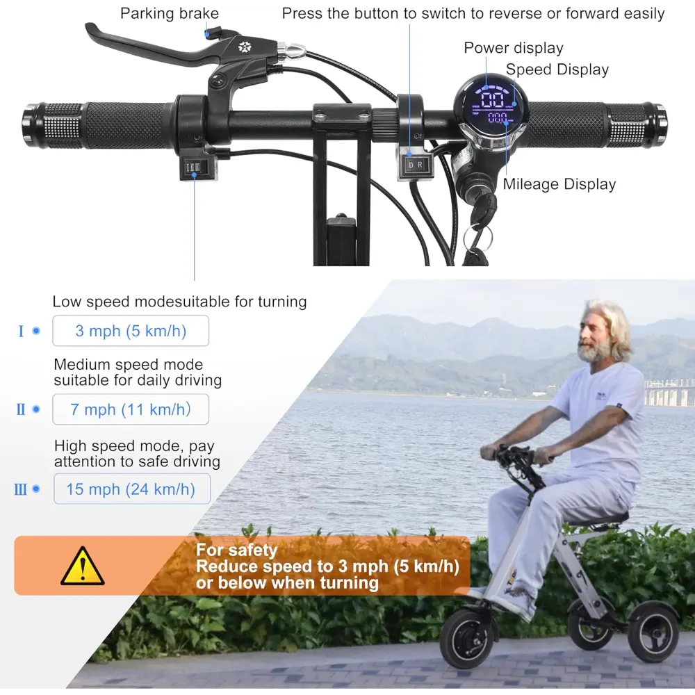 Το TopMate ES35 Πτυσσόμενο Ηλεκτρικό Τρίκυκλο για Ενήλικες είναι ένα συμπαγές ηλεκτρικό σκούτερ 3 τροχών σχεδιασμένο για κινητικότητα ενηλίκων και άνεση ταξιδιού. Το TopMate ES35 είναι μια ελαφριά και φιλική προς το ταξίδι λύση για ενήλικες που αναζητούν βελτιωμένη κινητικότητα. Με βάρος μόλις 16,1 κιλά, υποστηρίζει μέγιστο φορτίο 100 κιλά, καθιστώντας το κατάλληλο για ένα ευρύ φάσμα χρηστών. Ο σχεδιασμός του πτυσσόμενου τρίκυκλου επιτρέπει την εύκολη αποθήκευση και την υψηλή φορητότητα, ακόμη και σε αεροπλάνα, καθιστώντας το ιδανικό για μετακινήσεις ή ταξίδια αναψυχής. Είναι εξοπλισμένο με κινητήρα DC χωρίς ψήκτρες 250W, ο οποίος παρέχει ισορροπία απόδοσης, αθόρυβης λειτουργίας και αξιόπιστης ροπής για αστική κινητικότητα. Αυτός ο κινητήρας επιτρέπει στο σκούτερ να φτάσει σε μέγιστη ταχύτητα περίπου 13,7 χλμ/ω, καθιστώντας το κατάλληλο για ταξίδια μικρών αποστάσεων και χρήση σε εσωτερικούς ή εξωτερικούς χώρους σε σχετικά ομαλό έδαφος. Το σκούτερ τροφοδοτείται από μια αφαιρούμενη μπαταρία λιθίου 36V 7,8Ah, προσφέροντας αξιόπιστη αυτονομία και γρήγορη επαναφόρτιση. Διαθέτει άνετο κάθισμα με ρυθμιζόμενη πλάτη, λειτουργία αντίστροφης κίνησης και διακόπτη με κλειδί για πρόσθετη ασφάλεια και έλεγχο. Το ES35 διαθέτει LED για ορατότητα τη νύχτα και έναν εύχρηστο πίνακα ελέγχου για διαισθητικό χειρισμό. Το υψηλής ποιότητας σύστημα ανάρτησης εξασφαλίζει ομαλή οδήγηση σε διάφορα εδάφη. Είτε πλοηγείστε στους δρόμους της πόλης είτε σε πάρκα, το TopMate ES35 προσφέρει έναν συνδυασμό άνεσης, αποδοτικότητας και πρακτικότητας.