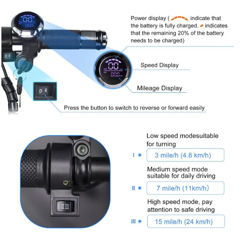 • Πίνακας ελέγχου: Απλή διεπαφή με ένδειξη γκαζιού και μπαταρίας