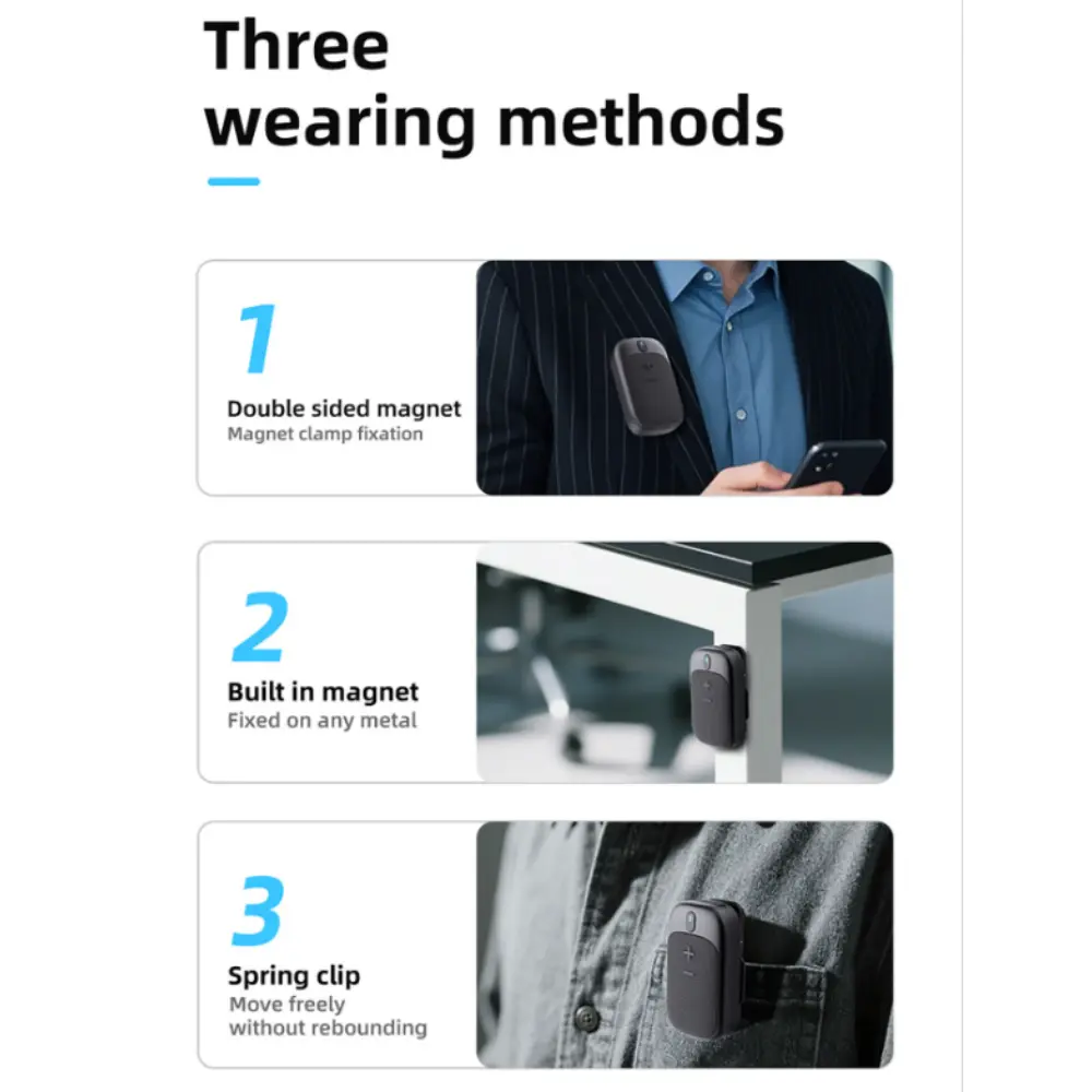 - Μίνι σχεδιασμός (μέγεθος τσέπης) με τρεις επιλογές εφαρμογής (μαγνητικός σφιγκτήρας, ενσωματωμένος μαγνήτης, κλιπ ελατηρίου) για άνεση χωρίς χέρια.